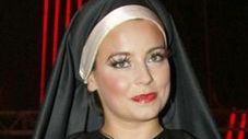 Aktorka wystąpiła w stroju zakonnicy, który wzbogaciła czerwoną podwiązką.