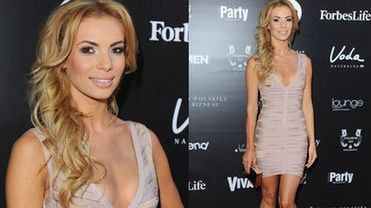 Janachowska miała na sobie przylegającą do ciała i bardzo krótką sukienkę, która podkreślała jej zjawiskowe kształty. Kreacja nie tylko wyeksponowała jej długie nogi, ale również biust, który przy tak szczupłej sylwetce jest dość pokaźnych rozmiarów.