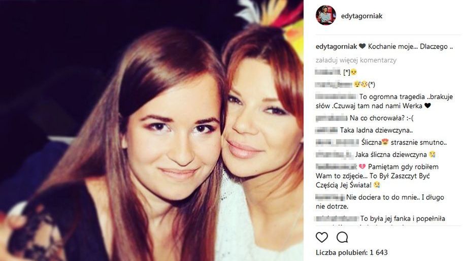 Kilka dni temu Edyta Górniak za pomocą mediów społecznościowych podzieliła się tragiczną nowiną. Piosenkarka opublikowała serię postów, w których oznajmiła, że jej oddana fanka nie żyje. Nie podano oficjalnej przyczyny śmierci Weroniki. Internauci oraz osoby, które znały dziewczynę z fanklubu Górniak, zasugerowały, że od jakiegoś czasu borykała się z depresją i mogła popełnić samobójstwo.