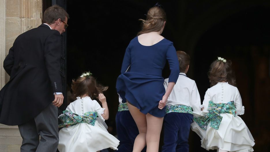 Przyszedł czas na ślub księżniczki Eugenii. To wielkie wydarzenie dla rodziny królewskiej. Przybyła plejada gwiazd, członkowie rodziny oraz przyjaciele. Goście niestety muszą mierzyć się z silnym wiatrem, który zwiewał kapelusze i... podwiewał sukienki.