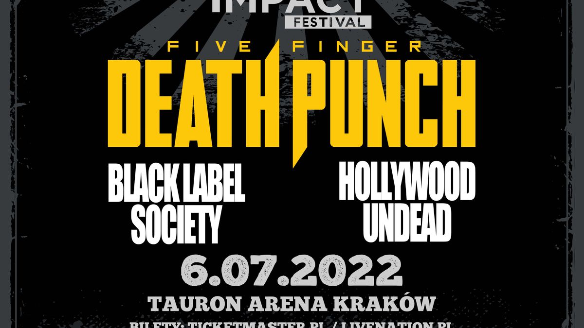 Główną gwiazdą IMPACT FESTIVAL 2022 będzie FIVE FINGER DEATH PUNCH. Jeden z najważniejszych hard rockowych zespołów wystąpi w Krakowie podczas 8. edycji festiwalu w towarzystwie Black Label Society i Hollywood Undead.
