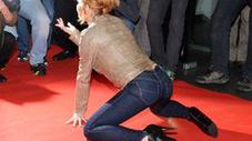 Panowie z aparatami z pewnością mieli wielki ubaw, gdy robili zdjęcia pozującej na kolanach Węgrowskiej. Iwona również wyglądała na zadowoloną. W końcu po to przychodzi się na imprezy, by zostać zauważonym, prawda?