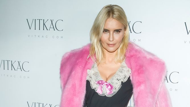Joanna Horodyńska w różowym futrze. Sztucznym?