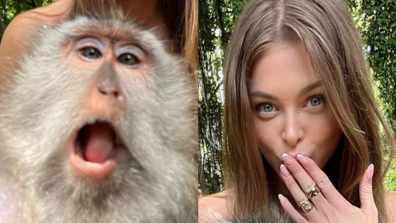 Joanna Opozda pozuje na Bali z małpą, a internauci żartują: "Miło, że wspierasz byłego i go promujesz"