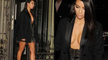 Kim miała na sobie spódnicę z frędzlami i czarną marynarkę. Nie założyła koszuli, ani nawet stanika, dzięki czemu wszyscy mogli podziwiać jej ogromny biust. Kanye był najwyraźniej bardzo zadowolony z wyglądu ukochanej, bo nie odstępował jej nawet na krok.