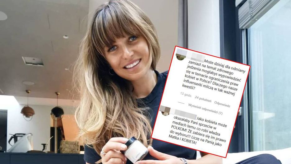 "Może dzisiaj dla odmiany zamiast na temat zdrowego jedzenia mogłabyś wypowiedzieć się w temacie ograniczenia praw kobiet w Polsce? Dlaczego nasze influencerki milczą w tak ważnej kwestii?" - dopytywała jedna z fanek.
