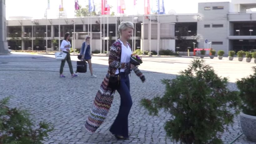 W takim stroju pojawiła się w gmachu telewizji.