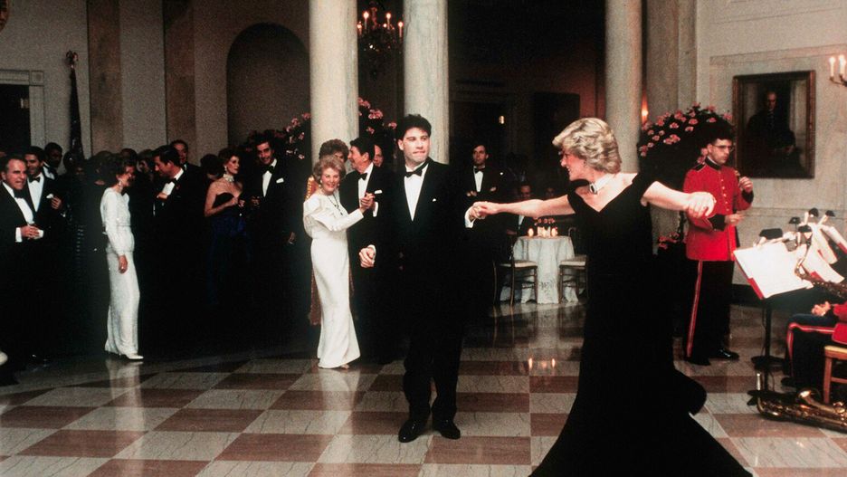 Kreacja miała swój debiut w 1985 r. podczas uroczystej kolacji zorganizowanej przez prezydenta USA Ronalda Reagana. To właśnie tam Diana w aksamitnej sukni przetańczyła na parkiecie z samym Johnem Travoltą w rytm takich przebojów jak "Grease" czy "Gorączka sobotniej nocy".