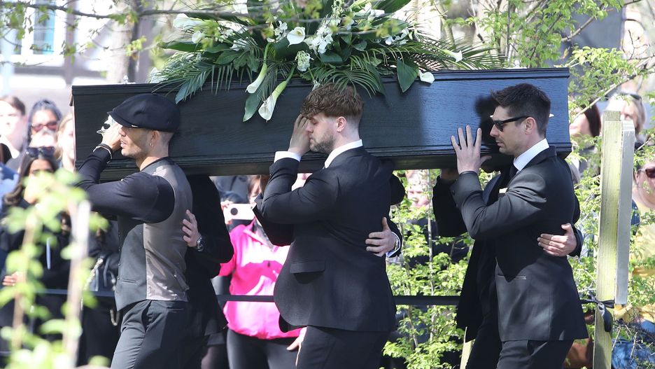 Max George, Siva Kaneswaran, Jay McGuiness i Nathan Sykes oddali hołd koledze, niosąc jego trumnę.