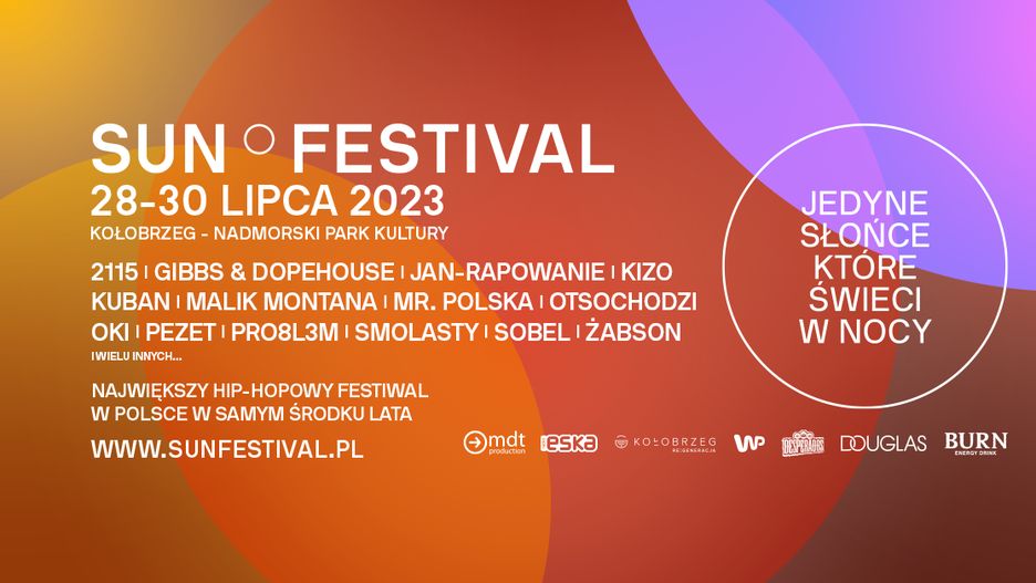 Tegoroczna, druga edycja Sun Festival pełna będzie unikalnych muzycznych wydarzeń. Na żywo zobaczymy m.in. jubileuszowy koncert Sokół feat. Pono, jedyny przedpremierowy koncert PRO8L3M, jeden z dwóch koncertów Sobla, jedyny taki występ tego lata w wykonaniu 2115 i wiele innych. Do line-upu dołączyli też m.in. Oki, Jan-Rapowanie, Kuban, Pezet, Malik Montana, Smolasty, Mr Polska, Reto, Otsochodzi, Young Igi, Guzior, Kizo, Kabe i Miszel, Gibbs i DopeHouse oraz Żabson.