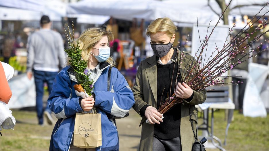 Paparazzi "przyłapali" Zamachowską i jej córkę Zosię na wiosennych zakupach. Przechadzały się między straganami, kupiły palmę wielkanocną.